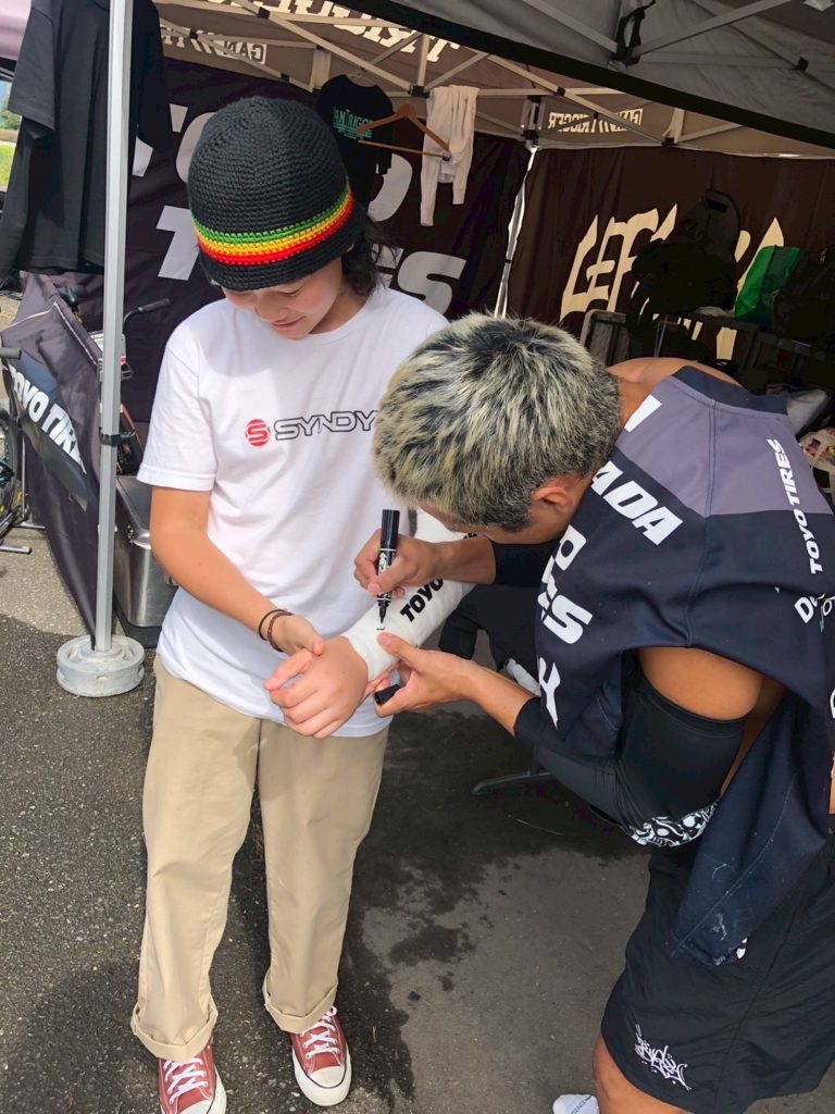 また大会期間中はキッズライダー達もGANTRIGGERブースに訪れてくれ、島田、西村2選手と交流を持つ事ができました。